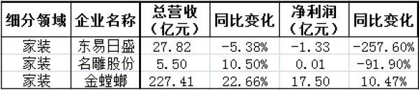 家装企业尽管营收数字较半年报好看,但依然负增长明显。