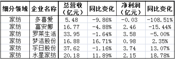 家纺企业业绩在三季度继续承压。财报显示,六家主要家纺企业中,四家营收同比下降,一半企业净利润负增长,最高降幅超过100%。梦洁、水星家纺表现较稳定,营收、净利均维持增长。