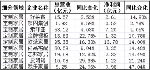 其中,仅有好莱客一家企业出现利润负增长,同比下降达到近15%。据好莱客解释,同比降幅的原因主要为政府补助的金额变化及三费结构变化的影响。
